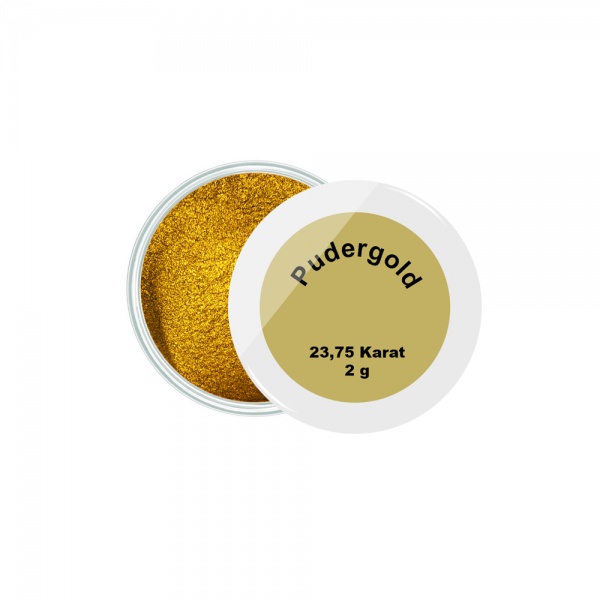 In einem aufwendigen Produktionsverfahren wird Echtgold in plättchenförmiges Pulver hergestellt. Es hat eine Stärke von ca. < 45µ.